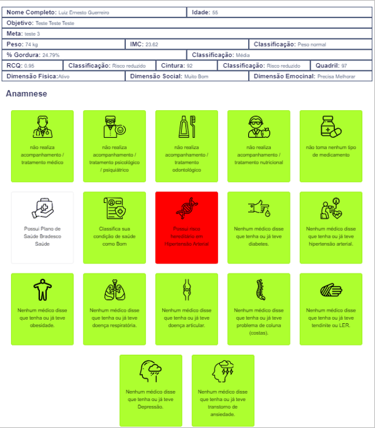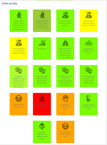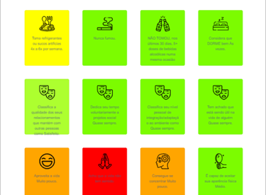 Realizamos avaliação sobre as condições de saúde e estilo de vida e geramos mais de 20 indicadores de risco à saúde e bem estqr, considerando as dimensões físicas, sociais e emocionais.